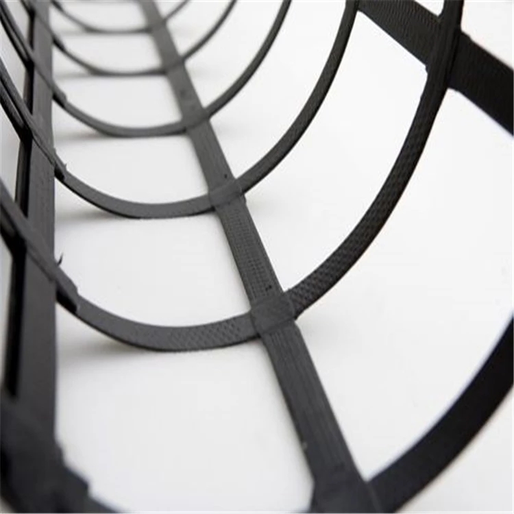 鋼塑復(fù)合格柵的拉力由經(jīng)緯編織的G強(qiáng)鋼絲承擔(dān),在低應(yīng)變能力下產(chǎn)生及G的抗拉模量,縱橫向肋條協(xié)同作用,充分發(fā)揮格柵對(duì)土體的嵌鎖作用。