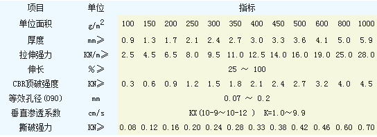 長絲土工布技術(shù)指標(biāo)(執(zhí)行GB/T 17639-1998標(biāo)準(zhǔn))